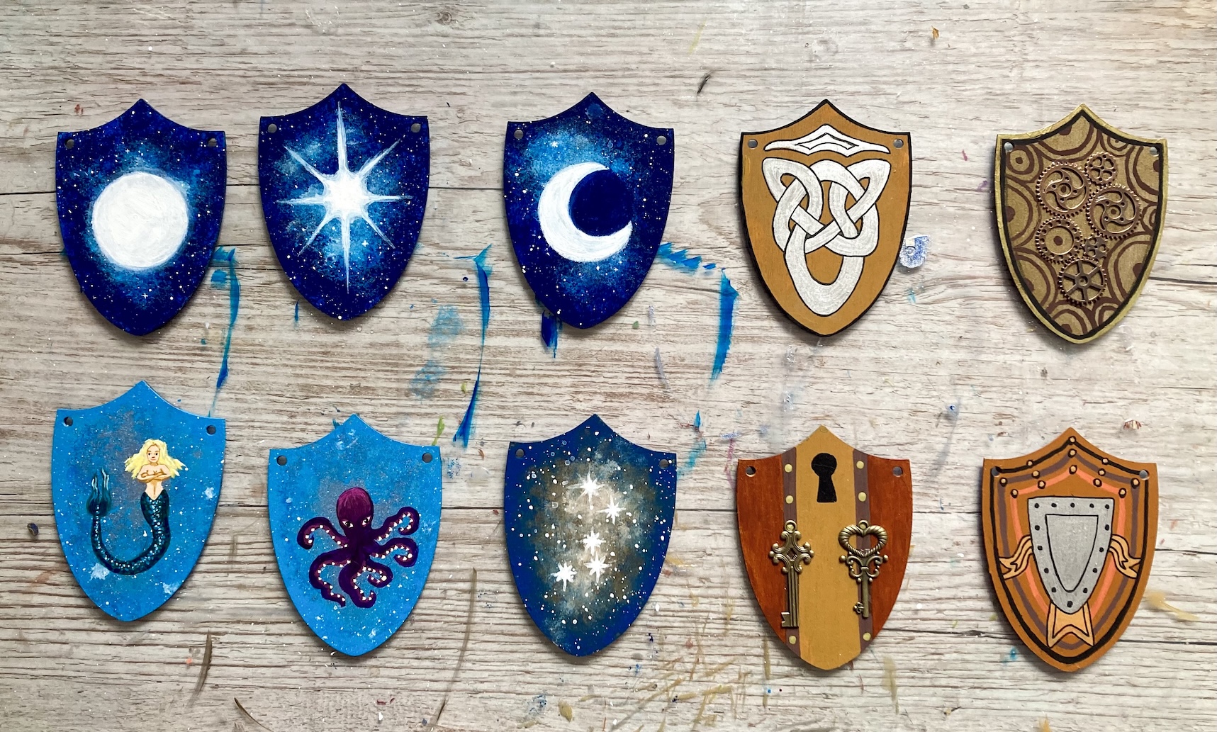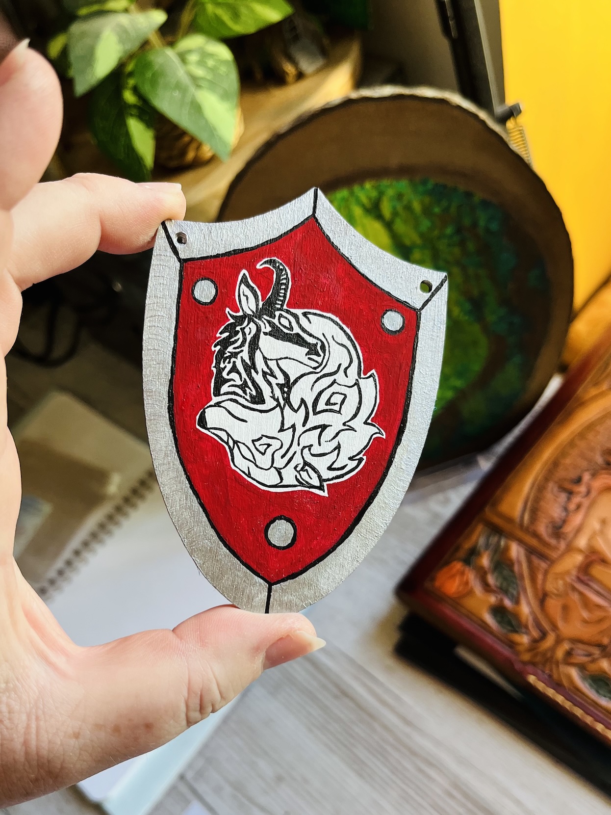 Réalisation sur mesure d’un petit blason en bois (7cm x 70cm) peint à la main selon le thème de votre choix.